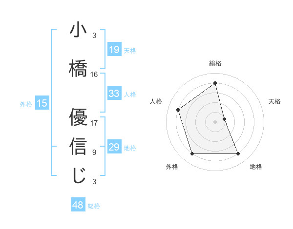 小橋 優信じさんの地格は29画の4点!
