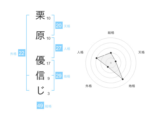 栗原 優信じさんを姓名の画数から五運を鑑定