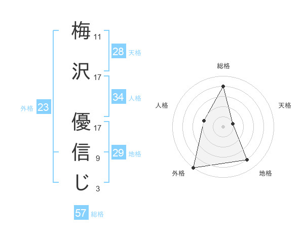 梅沢 優信じさんを姓名の画数から五運を鑑定