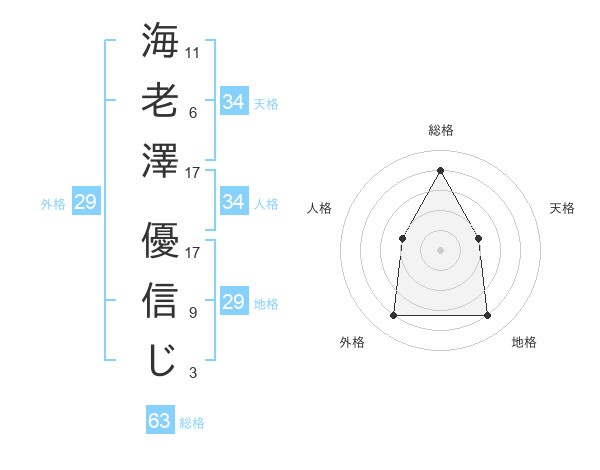 海老澤 優信じさんの総格は63画の4点!