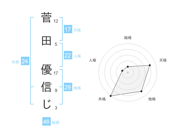 菅田 優信じさんを姓名の画数から五運を鑑定