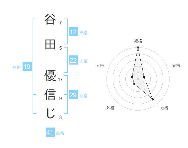 谷田 優信じさんを姓名の画数から五運を鑑定