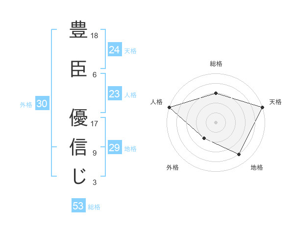 豊臣 優信じさんを姓名の画数から五運を鑑定