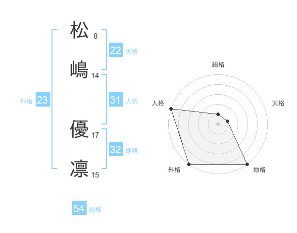 松嶋 優凛さんを姓名の画数から五運を鑑定