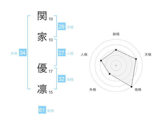 関家 優凛さんの総格は61画の3点!