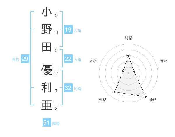 小野田 優利亜さんを姓名の画数から五運を鑑定
