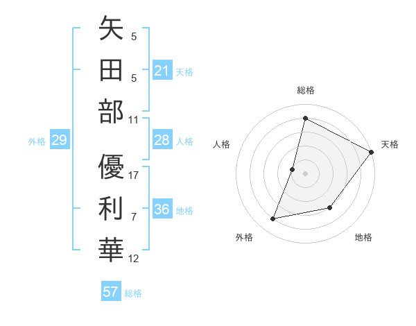 矢田部 優利華さんを姓名の画数から五運を鑑定
