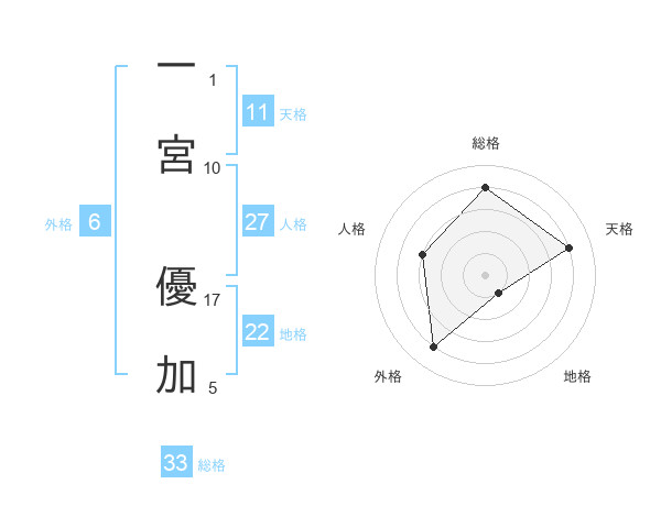 一宮 優加さんの地格は22画の1点!