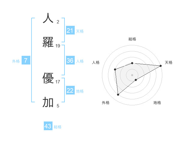 人羅 優加さんの天格は21画の5点!