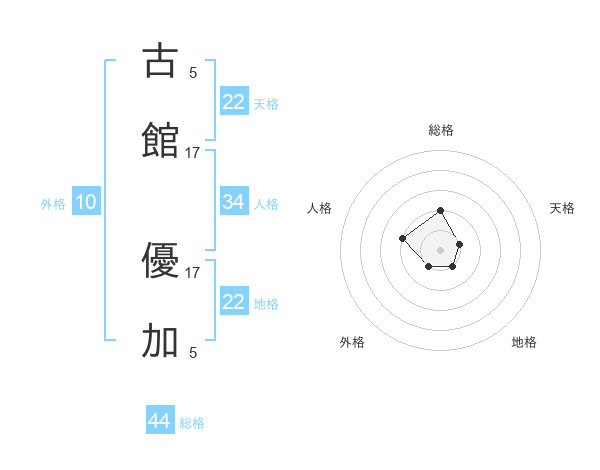 古館 優加さんの総格は44画の2点!