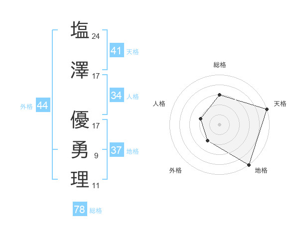 塩澤 優勇理さんの総格は78画の3点!