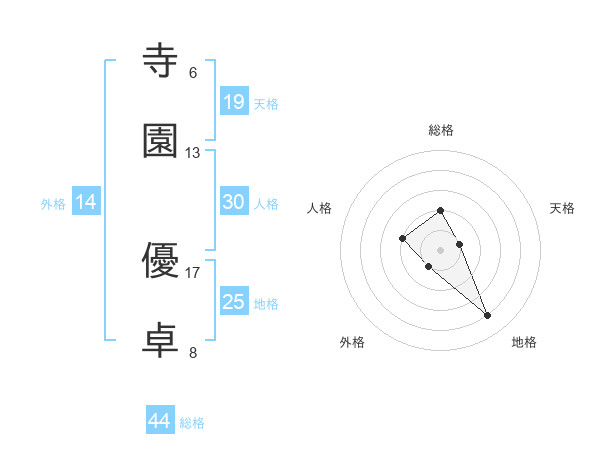 寺園 優卓さんの総格は44画の2点!