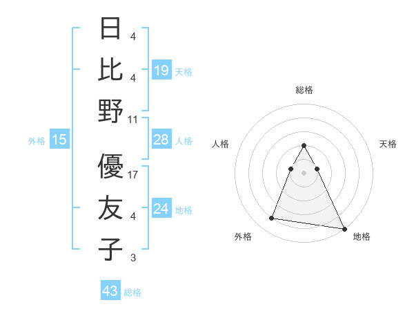 日比野 優友子さんの総格は43画の2点!