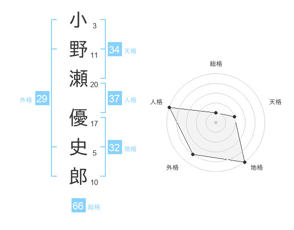小野瀬 優史郎さんを姓名の画数から五運を鑑定