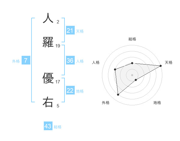 人羅 優右さんの天格は21画の5点!