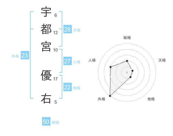 宇都宮 優右さんを姓名の画数から五運を鑑定