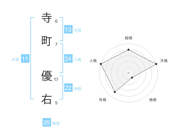 寺町 優右さんの総格は35画の4点!