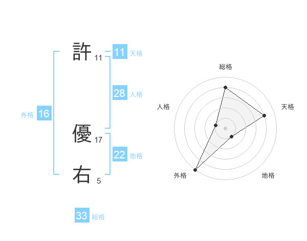 許 優右さんの外格は16画の5点!