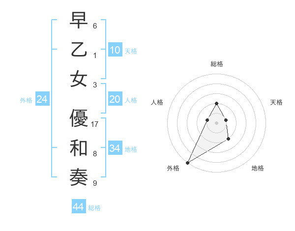 早乙女 優和奏さんの総格は44画の2点!
