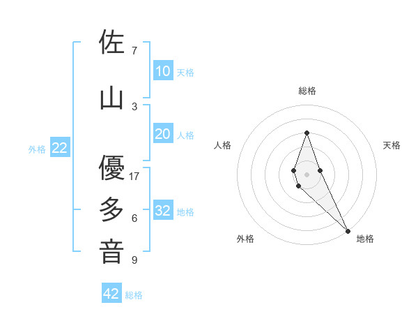 佐山 優多音さんを姓名の画数から五運を鑑定