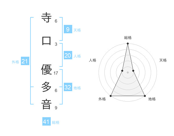 寺口 優多音さんの外格は21画の5点!