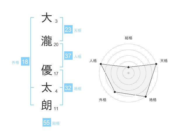 大瀧 優太朗さんの天格は23画の5点!