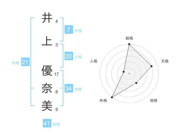井上 優奈美さんを姓名の画数から五運を鑑定