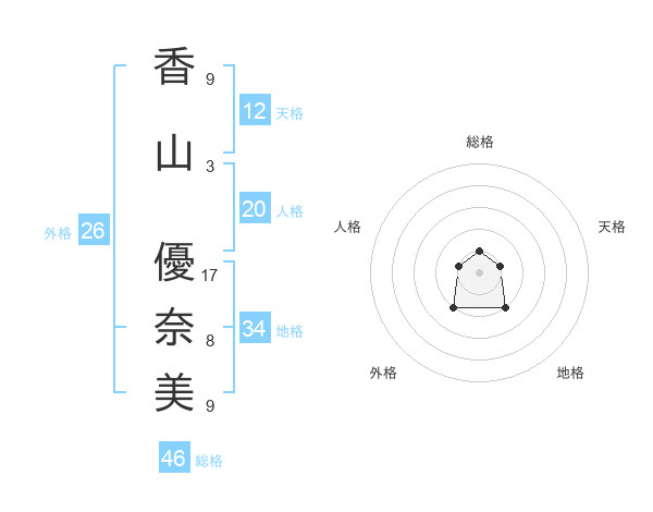 香山 優奈美さんを姓名の画数から五運を鑑定