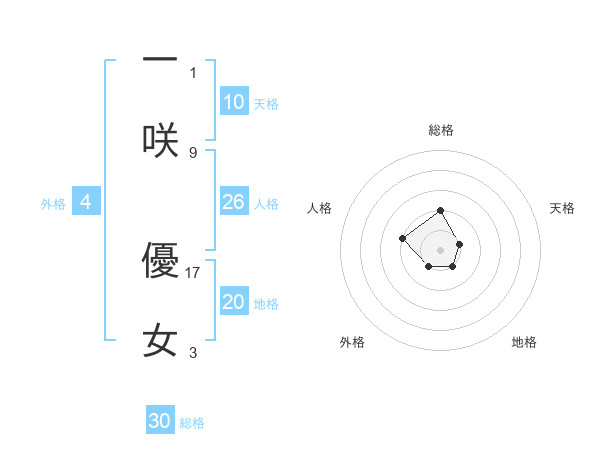 占い結果は姓名判断である以上、良い場合も悪い場合もありますが、決してお名前を誹謗中傷するものでなく、画数の自動計算によって得られたものです。また、本サイトの検索によって得られた鑑定結果で、第三者を誹謗中傷したり名誉を棄損するような行為を禁じます。