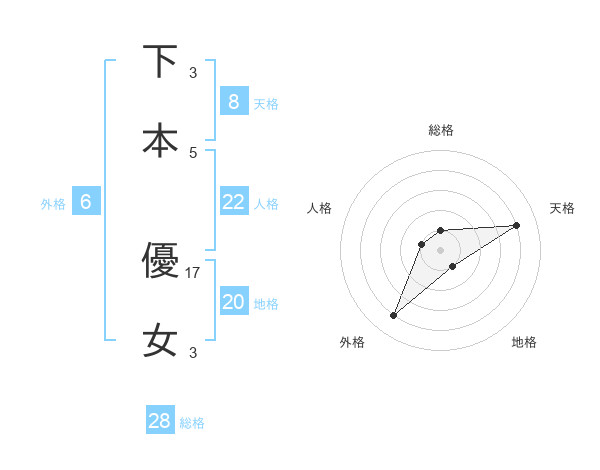 下本 優女さんの天格は8画の4点!