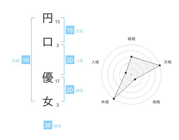円口 優女さんの天格は16画の5点!