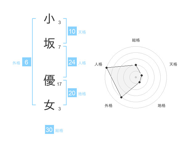 小坂 優女さんの総格は30画の2点!