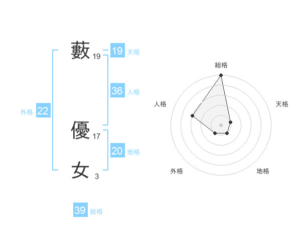 藪 優女さんの地格は20画の1点!