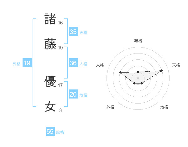 諸藤 優女さんを姓名の画数から五運を鑑定