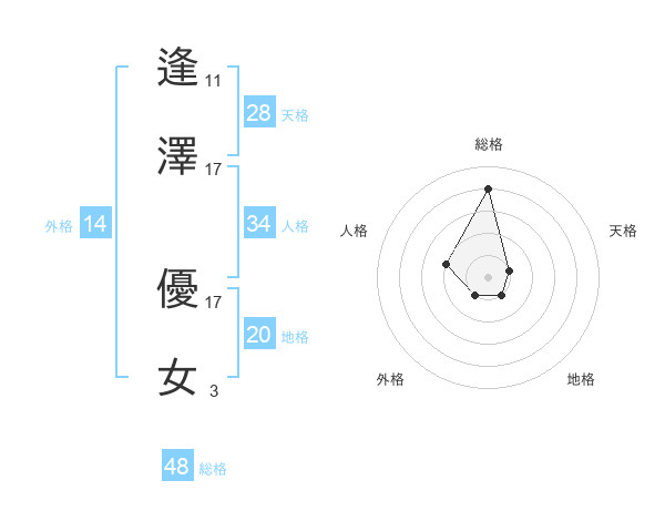 逢澤 優女さんの外格は14画の1点!