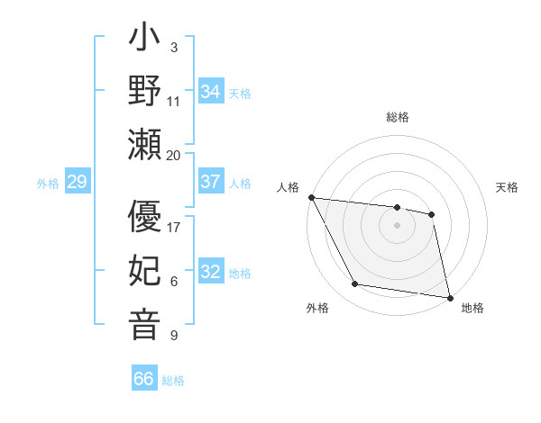小野瀬 優妃音さんを姓名の画数から五運を鑑定