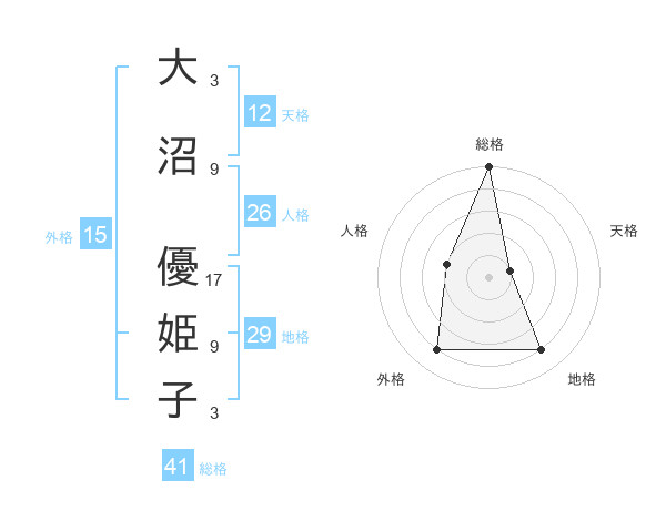 大沼 優姫子さんを姓名の画数から五運を鑑定