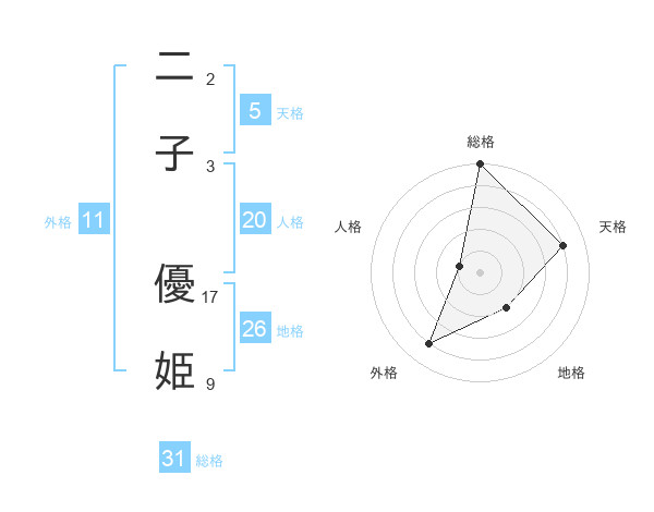 二子 優姫さんの総格は31画の5点!