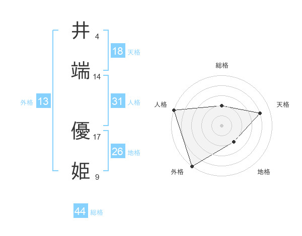 井端 優姫さんの天格は18画の4点!