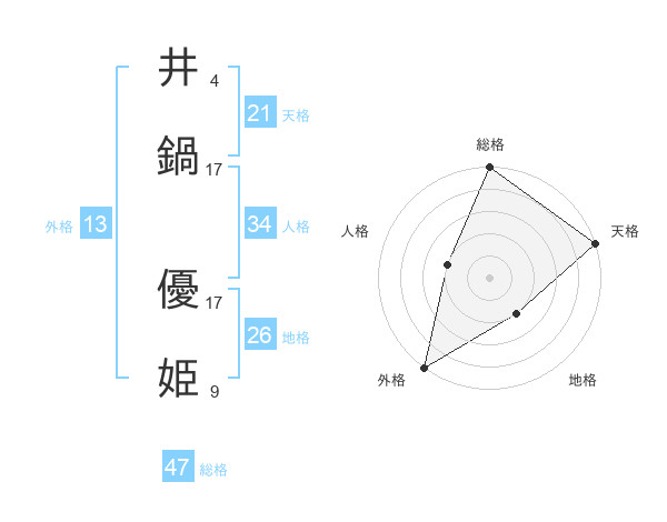 井鍋 優姫さんを姓名の画数から五運を鑑定
