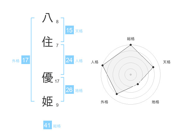 八住 優姫さんの外格は17画の4点!