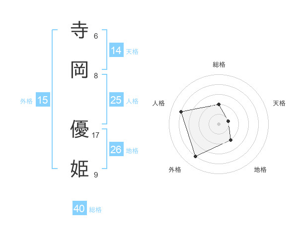 寺岡 優姫さんの天格は14画の1点!