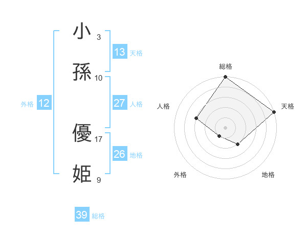 小孫 優姫さんの総格は39画の5点!