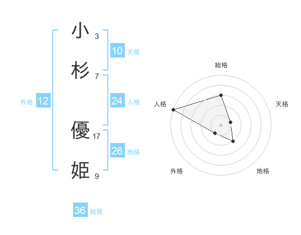 小杉 優姫さんを姓名の画数から五運を鑑定