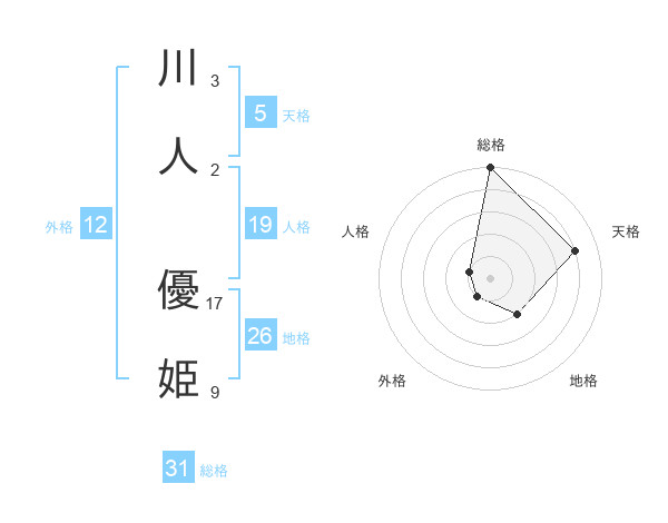 川人 優姫さんの総格は31画の5点!