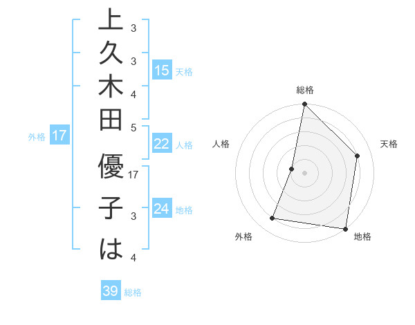 上久木田 優子はさんを姓名の画数から五運を鑑定