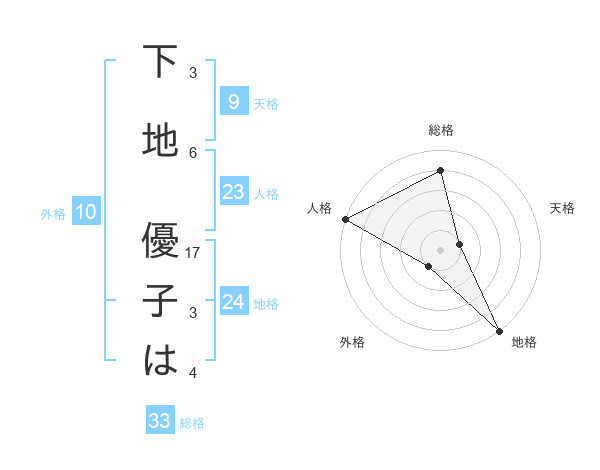 下地 優子はさんの総格は33画の4点
