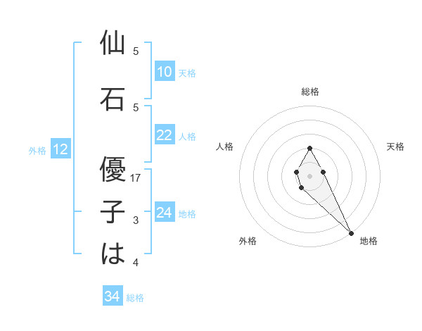 仙石 優子はさんを姓名の画数から五運を鑑定