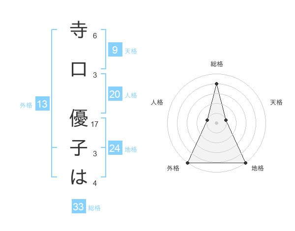 寺口 優子はさんを姓名の画数から五運を鑑定