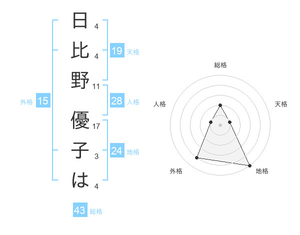 日比野 優子はさんを姓名の画数から五運を鑑定